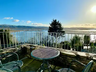 WOODPECKER enjoys amazing, ever-changing, south facing sea views of the Dyfi (Dovey) estuary, hills, mountains, Cardigan Bay and beyond. Check out our two WEBCAMS on our website, they are set up to pan from East through South to the West and back again 24/7.