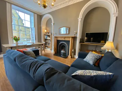 A beautiful Grade II* listed Georgian 2 bed/2 bath ground floor recently renovated apartment in the heart of Aber. Only a 2 minute walk to the vibrant sea front and even less to the top end of town with all its charming independent bars/cafes/restaurants, yet tucked away on a quiet square between the Old College, Church & Castle grounds. In short, an ideal location to discover the many benefits of Aber. Free on street parking or £7/day in Church car park across the road.The apartment is on the ground floor and displays many original features including large floor to ceiling sash and shuttered windows, high ceilings with decorative cornice, a (non functioning) fireplace and column radiators. The entire apartment has been lovingly restored to retain the property's charm and character.