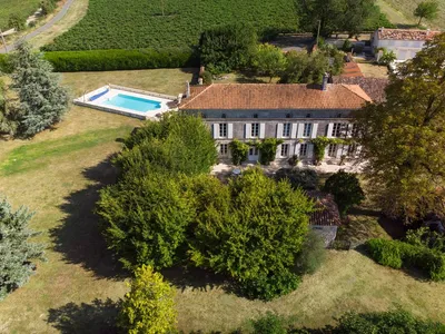 Nestled among the vineyards of the prestigious Grande Champagne region, renowned for producing the finest Cognac grapes in France, this charming 18th-century Charentais logis offers a peaceful and scenic escape. The house features spacious, sun-filled rooms that blend traditional charm with modern comfort, creating a welcoming space where you can truly unwind.Set within two acres of lush, enclosed grounds, the property is a haven of tranquility, complete with an orchard, courtyard, and a delightful pigeonnier. The sun-drenched garden is perfect for relaxing or enjoying outdoor activities, with open spaces ideal for a game of badminton or simply soaking up the natural beauty around you. The 10x5m swimming pool, south-facing and beautifully maintained, offers the perfect spot to cool off during warm summer days.