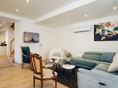 VILLA LE CEP - Menthon-Saint-Bernard - Lake Annecy 240 m2, 5 Bedrooms, 4 Bathrooms Sleeps 12 (max 12 adults, 1 baby) Slopes 17 km, In Village centre Car recommended Large terrace and veranda Bright, spacious interior Wood-burning stove OVO Network is the market leader in premium chalet rentals in authentic mountain destinations. Villa Le Cep is an OVO Network property. The OVO Network team’s opinion - Situated in a charming village on the edge of Lake Annecy, Villa Le Cep sleeps 12 guests in five bedrooms with four bathrooms. A comfortable living room invites you to relax on the corner sofa, where you can watch television or read a book from the library. The woodburning stove makes for a cosy atmosphere on chilly winter evenings. A large dining table overlooks the terrace, but in good weather, you can enjoy your meals at the outdoor table. The fully equipped kitchen has a breakfast bar where you can grab a snack or enjoy a chat while preparing meals. There’s a bedroom on this floor with an en-suite shower room. This room can be arranged with a double bed or two single beds. There are two more double bedrooms on the first floor, which share a shower room and separate toilet. One of these bedrooms has a desk for remote working, while the other has a private terrace furnished with armchairs and a sofa. There is also a washing machine and tumble dryer. There is a dormitory with four single beds on the top floor, as well as a master suite with a double bed, dressing room and en-suite bathroom with bath, shower and toilet. This floor also has a second bathroom with bath and toilet, making it perfect for a family with children. Two cars can be parked outside Villa Le Cep. Free wifi, cleaning, towels & linen included. Kindly note: Following a minor plumbing issue last month (July 2025), part of Bedroom 1 and the adjacent bathroom are undergoing light cosmetic touch-ups. The only visible signs are a slightly marked section of parquet and a couple of small imperfections in the bathroom tiling. The rest of the villa remains in immaculate, like-new condition. NOTE: Free wifi. Cleaning, linen and towels included!Reviews