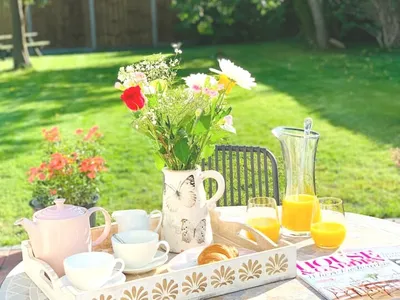 The cottage is stylish, fully kitted and offers a very comfortable, private and family friendly environment. Travel cot (please kindly bring own linen for this), stairgate and high chair available free of charge. Extra guest floor mattress suitable for a child will be provided to accommodate the 7th guest. Plenty of outdoor seating and bbq stand in a lovely, well maintained garden with patio area. Own spacious driveway in the front which can accommodate several cars.