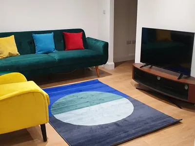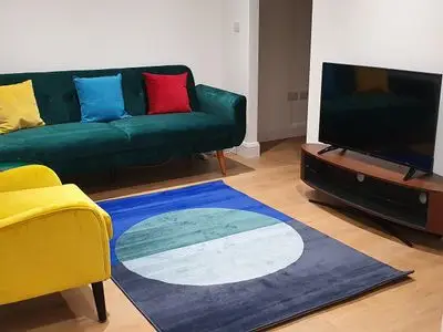 Modern Apartment nicely furnished Apartment with 1 bedroom, 1 bathroom and modern open plan lounge. Lounge has a comfy Sofa bed and an ultra HD smart TV with NETFLIX as well a smart speaker with Amazon Music for entertainment. There is a multi use dining section which also can serve as Work station. Apartment is 1 minute walk to the town centre and in close proximity to the train station.ONLY 25 YEARS AND ABOVE CAN BOOK.