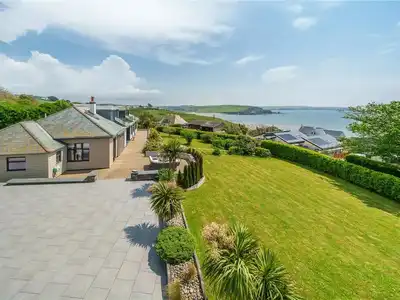 Simply stunning detached 4 bedroom property set in private gardens with fabulous views over Bigbury Bay, seconds from the sandy beach. Child friendly, pet friendly, with wifi, garden and parking.