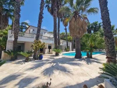 Villa Les Palmiers benefits from two covered terraces by the pool and a further huge sun terrace surrounded by Mediterranean vegetation where you can enjoy the views, soak up the sun while sipping a glass of rosé or play table tennis. The grounds are enclosed and ideal for children to play and there is plenty of shade to be found under the palm trees giving an overall exotic atmosphere in the garden. There is reversible air conditioning on the ground floor, and it is also important to mention that the whole villa does remain cool due to its construction.