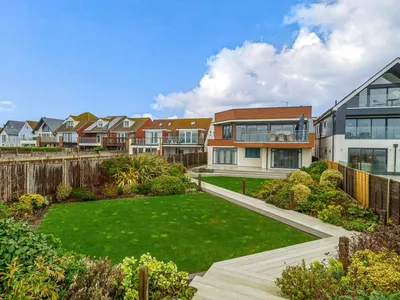 Electric gates provide access to the block paved front driveway leading to a double garage and plenty of additional space for parking. The beach front garden has been professionally landscaped with lawned area and attractive architectural and scented shrubs. Features include the decked boardwalk, terrace and bespoke sunken firepit ideal for family gatherings and entertaining away from the sea breeze. A further large decked terrace adjoining the house offers an area for sunny relaxation while complementing the balcony above.