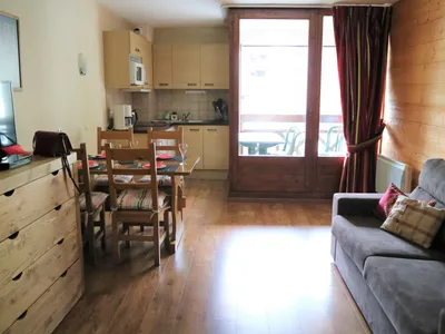 The apartment is just a few minutes walk to the centre of town and 600m from the Olympe Gondola - with a ski bus running from the bottom of the drive every 15 minutes direct to the gondola. The gondola takes you to Meribel and the whole of the Three Valleys - the largest ski area in the world. Summer cycling, walking whitewater fun or parapenting are all superb with the Vanoise glaciers on our doorstep.This light and warm studio apartment, sleeping four is a spacious 28m2. Large living and dining room area with a new comfortable sofa bed converting into a double bed, well equipped kitchen area, a modern bathroom with bath and shower and toilet. Coin montagne with bunk beds providing a separate area to sleep two, separated from the lounge with a door and wall for extra privacy. Fast wifi is available within the apartment free of charge.