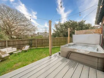 - Outdoor space: Private garden with hot tub and dining area