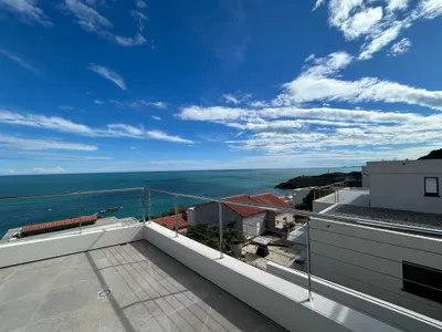 The house has two storages, upper floor is main entrance, bathroom, toilette, kitchen - dining / living room with sea view. Balcony for dinner outdoor. Lower floor is three bedrooms with kingsize beds, two bathrooms, relax room and sauna. Terrasse acces from each bedroom and access to the pool.