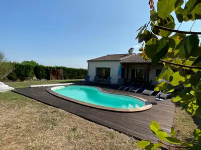 On a private holiday domain tucked away in an elevated position less than a kilometer from the market town of Chalais, in the Charente region, our spacious ground-floor villa Le Charme offers 4 bedrooms and 3 bathrooms. It sleeps up to 9 guests and is ideal for a family or friends holidaying together. It is also available over weekends (min. 3 nights stay) to accommodate guests attending weddings in the area.