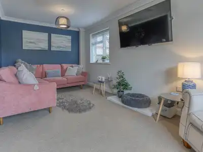 Coastal House with Stylish Interiors. Dog friendly with enclosed garden, off road parking.