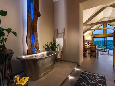 Custom made steel four poster bed, massive roll bateau bath and wet room for an indulgent stay