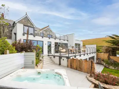Watergate Viewis located 500m from the majestic Watergate Bay. Set in an acre of private landscaped gardens, with views from the hot tub out to sea and beyond. Watergate View is the perfect choice for big family gatherings and hosting those special occasions.