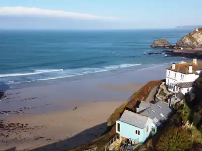 The pretty, sandy beach has a stream running down to the sea on the left hand side. It is a popular family beach which, like many beaches on the north Cornish coast, is popular with surfers and in particular bodyboarders who turn up in force at high tide on big swells to surf the harbour wall, or Vortex as it is known.. The beach is cleaned daily during the season and dogs are allowed on the beach all year round, but only before 10am and after 6pm in July and August