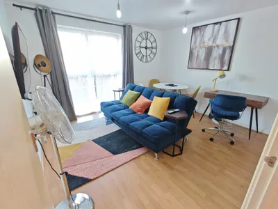 Stylish Furnishing, Comfy Sofa bed, Large Flat Screen Smart TV with Netflix, Smart speaker with Unlimited music, Dining, Workstation, Well equipped Kitchen with Appliances, Cookery, dishes, Cutlery, Glasses & Mugs, Dishwasher, Washer dryer, Spacious Bedroom with comfy beds, Good size Bathroom with Bath tub & Shower. This Apartment is walking distance from Train Station with access to get around. This Modern Apartment ticks all the right boxes.ONLY 25 YEARS AND ABOVE CAN BOOK.