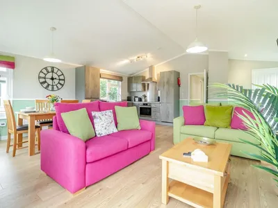 Luxury boutique style lodge with one double bedroom and one twin bedroom. Spacious open plan lounge and kitchen area with French doors leading out to the decking, with outdoor hot tub. No pets.Outdoor sunken Hot Tub