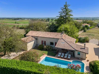 **** New to the Holiday Rental Market****This delightful holiday home has recently been fully renovated and sleeps up to 6 guests in 3 bedrooms in luxury. The property is set on the prominent position overlooking the beautiful countryside yet is just a 5 minute drive to the bustling village of Eymet with many shops, restaurants and bars as well as weekly markets. The soft furnishings and furniture are all of a high quality. You enter in through gates to a charming parking area with the Games Barn to the left and the cottage to the right.