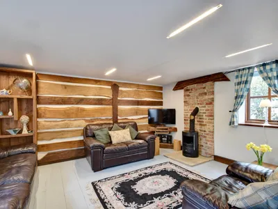 You know this is a special cottage the moment you walk through the door; a stunning farmhouse kitchen greets you, featuring a huge bespoke wooden table, big enough to seat 12 people comfortably. The open plan lounge area has a real Mid-West ranch feel, with its chinked wooden wall and electric stove with a cosy flame effect.
