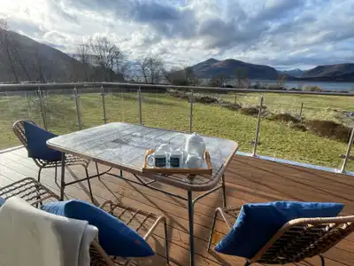 Each room has patio doors leading onto a large deck with views over Loch Linnhe to the hills of Ardgour.