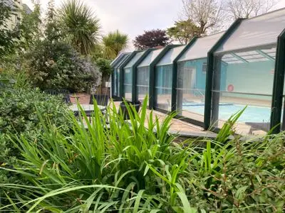 SWIMMING POOL HEAVEN !ESCAPE TO FOWEY WITH WONDERFUL HEATED INDOOR /OUTDOOR POOL , SAUNA and GORGEOUS GARDENS, NEAR BEACH AND COASTAL PATH . ENJOY AL FRESCO MEALS ON THE SOUTH FACING BALCONY OVERLOOKING THE GARDENS. IN WINTER CURL UP BY THE LOG FIRE AFTER A REFRESHING SWIM. SLEEPS 4 IN ENSUITE KING BEDROOMS OR 2 SINGLES IN BEDROOM TWO