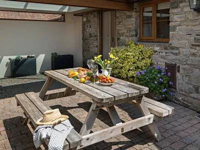 Courtyard Cottage is an attractive single-story stone cottage, sleeping up to 4 guests in two bedrooms. The cottage is well suited to guests with limited mobility, having just a single step at the front door. Beautifully restored and fully equipped to a very high standard, it offers you a luxurious, relaxing base for a break in North Devon at any time of year.Downstairs: The contemporary oak kitchen is equipped with all the appliances you would expect in a self-catering holiday cottage, including: a fan oven, hob, microwave, full height fridge freezer, washing machine, drier, and dishwasher, as well as a large dining table and a 40" TV.