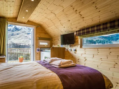 Our beautiful Eco Cabins have the most fantastic views over the hills and mountains. With underfloor heating and full insulated, they are cosy and warm. Sleeping 2 in a lovely double bed with ensuite shower-room, a kitchenette, sofa and wall mounted TV with Freesat channels. Good wifi across the site. There's a balcony to the front to sit out and enjoy the spectacular views. Free parking space at the rear/side of the cabin.