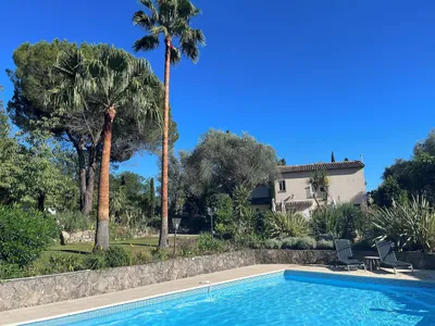 This spacious, beautifully renovated Mas has breathtaking views of the hills towards Magagnosc. Located on the outskirts of the perfume capital of Grasse this property provides an excellent holiday base to explore some of the very best Riviera destinations within a short drive. It can comfortably accommodate 10 guests in 5 ensuite bedrooms. Valbonne is just 12 minutes drive, with Opio and Chateauneuf de Grasse close by.The house is surrounded by spectacular landscaped gardens with plenty of space to sun bath or sit in the cool shade under one of the many palm or olive trees, one of which is 800 years old.