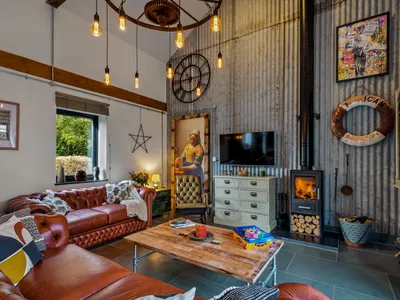 This 5* rustic-indusrial barn sleeps 6 guests in 3 bedrooms. Zinc has striking interior design, beautiful artwork, vintage furnishings and modern amenities, underpinned by a sustainable ethos.The modern kitchen, fitted with large induction range cooker, fridge/freezer, laundry facilities etc, blends in with the quirky rustic industrial theme throughout the property.