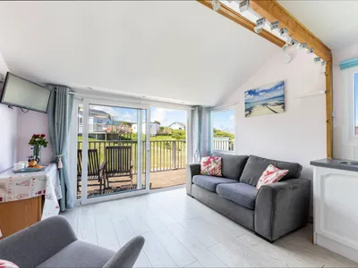 ChyAnTowan is a 2 bedroom holiday chalet on the Riviere Towans Chalets site in Hayle. It sleeps four people in two bedrooms.The chalet is a five minute walk from the life-guarded Hayle beach with golden sand and rock pools. There is a picnic bench and chairs on the large enclosed veranda. Bedroom 1 has a double bed and bedroom 2 has two single beds.