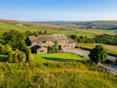 Outstanding, detached Yorkshire character farmhouse with panoramic views.6/7 bedrooms, 4.5 bathrooms, extensive grounds, hot tub and sauna (cold plunge April-September), games room with pool table and bar, outdoor terrace with sofas and BBQ.