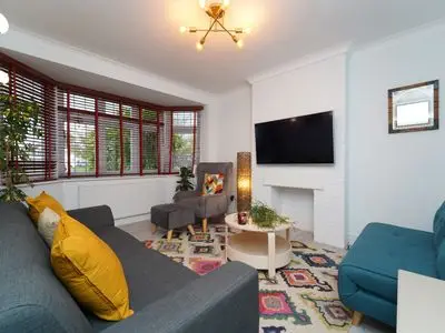 3 Big bedrooms with luxury bedding and comfortable mattress Tall wardrobes in each room Desk and working station with ergonomic chair High speed internet EV Charger Smart LED TV Energy Efficient house with EPC 'C' Central heating Fully equipped kitchen with Bosch Dishwasher, Hob, Oven, Microwave, Drinking Water Filter Bosch Washer and Dryer 1.5 bathrooms with water softener for soft hair and skin Private parking for 2 cars and lots of street parking (in front of the house) External Security Cameras Ring Door Bell Smart LED TV Public outdoor space infront of the houseAccommodates up to 6 people across 3 bedrooms Bedroom 1 - 1 x Super King Bed / 2 Large Single beds Bedroom 2 - 2 x King Size Bed Bedroom 3 - 1 x Single Bed Living Room - 1 x Sofa Bed 1x 3 seater SofaFully equipped kitchen for your culinary needs including Oven, Hob, Microwave, Dishwasher, washing Machine. Convenient free private parking with charging point