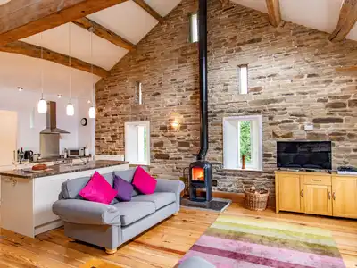 A beautifully converted space - ideal to relax and connect. You will enjoy a generous open-plan living area, a cosy log burner, and two luxurious en-suite bedrooms. Perfect for two couples or a family - with one bedroom offering flexible bed arrangement (a superking or 2 twin beds).As well as board games, books, toys and Netflix there's also a games room with table tennis. A well equipped kitchen allows you to spend time together over meals.