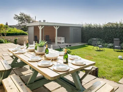 Sand Dollar boasts a private, enclosed garden with ample lawn space, perfect for children and pets to play. The garden includes a patio dining area, a charcoal BBQ, and an open summer house with lockable storage. The garden’s tranquillity and beauty make it a perfect spot for relaxation and outdoor activities. There is also ample parking for three cars on the driveway.