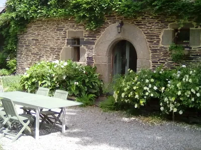 Les Chouettes is an early 16th century stone cottage in typically Breton style with large heated salt water pool. Fully tiled throughout the ground floor and pine floors upstairs which are both child friendly. The ground floor of this cottage is a spacious open plan area with exposed beams and a wood burner set into a huge original granite fireplace, 2 comfortable sofas, English satellite TV with DVD and CD music player, large round oak dining table and chairs, and newly fitted and well equipped kitchen area with built under electric oven, gas hob, cooker hood, microwave, dishwasher, large fridge/freezer and washing machine. There is a wide selection of English books, DVD's and board games to suit all ages.There is a lovely garden and patio area with large table, chairs, sunshade, barbecue and swing set. There is a secure gate which opens into the gardens surrounding the heated swimming pool.