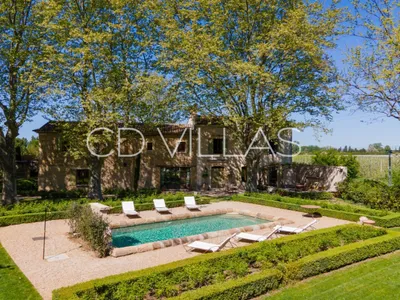 Magnificent 17th-century villa situated in a quiet setting surrounded by apple orchards, with a magical courtyard, pool, gardens and fountains, just 5 minutes from the pretty village of L'Isle-sur-la-Sorgue. Finished to the highest of standards the property comes with hotel style services, daily cleaning, continental breakfast and concierge support.The exterior