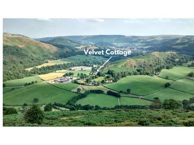 Set back above a quiet single track lane, Velvet Cottage is the perfect place to unwind from the stresses of everyday life. With three bedrooms, one bathroom and a private offroad parking bay for one vehicle (plus parking for a second), our self catering holiday let can accommodate up to five guests.The front door opens into a lounge with leather sofas, smart TV, DVD player, unlimited fast WiFi and an electric fire. The lounge leads into a well-equipped kitchen diner with magnificent views across the valley. At the bottom of the stairs, a small work area with ethernet broadband is available for jobs that won't wait!
