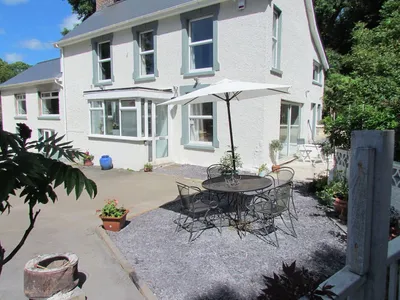 Fabulous holiday home set in extensive grounds and located near to the village of Llangrannog within walking distance (45 mins) of village pub, café and Blue Flag beach. indoor fully enclosed BBQ hut with bar extension installed September '24, just in case it rains but you want some grill cooking action. We have a wood fired soaking tub which seats 7/8 people set in a private garden setting. Fully renovated former farmhouse with luxury kitchen and bathroom and literally acres of private space to relax and enjoy the countryside. The farmhouse sleeps 7 (+1) in 4 bedrooms; two king-size bedrooms, a single bedroom (with further single pull-out bed) and a small bunk room (ideal for children). There is a large living / dining room with wood burning stove, smart TV and WiFi. We have a large elevated kitchen with a triple aspect, window seats, kitchen island with seating, chaise sofa, range style cooker and the all important wine cooler. As part of renovations we installed a brand new luxury bathroom with free standing bath and walk-in drench shower. Access is available to a basement room with pool table and dart board. There is a small babbling stream flowing through the centre of the grounds with several separate garden areas to explore including a mini-orchard with apple, plum, pear and cherry trees, a small wooded area and 1 acre grassed field with football posts at the front of the property with grounds totalling 2 acres. The gardens are regularly visited by birds including Red Kite, Buzzard, Gold Finch, Bull Finch, Great Spotted Woodpecker, various species of Tits, Nuthatch, Grey Wagtail, Wren, Jay, Goldcrest, Pheasant and more.Located in a secluded outdoor space near the stream, the wood fired hot tub is a hands on experience and guests will need to light the fire and add wood to the stove periodically to warm the water. There are no chemicals in the water, so along with the anti-bacterial properties of the western red cedar construction and the sterilising nature of heat from the stove, both elements combine to ensure a totally natural bathing experience. Best enjoyed on clear night to enjoy the dark skies as we are blessed with very little light pollution.