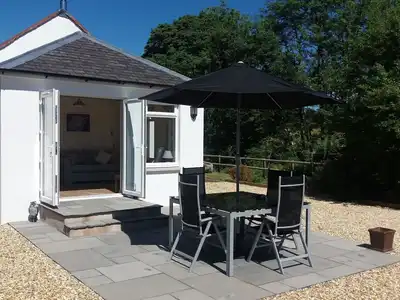 Riverside Cottage in Southern Scotland is a detached former bothy built c.1880 which has been renovated to a modern, high standard, luxury self-catering property.Occupying a stunning riverside location in the small rural village of Boreland 7 miles north of Lockerbie (view our location), the holiday cottage benefits from glorious views of the surrounding countryside. The self catering property has a wonderful homely charm and features an open plan kitchen/dining/living area, a fabulous sunroom which opens out onto a patio area, electric heating and a wood burning stove.