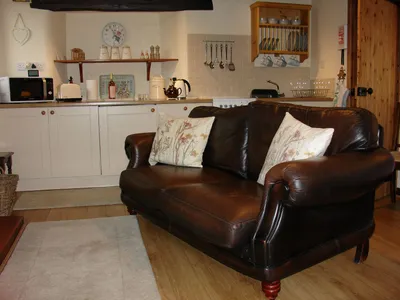 The cottage has an open plan kitchen / lounge with a larder refrigerator, a small freezer and a multi fuel stove keeping you warm on