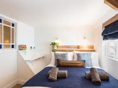 One bedroom (kingsize bed), curved period stairway, kitchen, bath & shower, sitting room, hallway, welcome entrance, central location. Netflix, Prime tv & movies (at no extra change), sound bar & Alexa. Private front door entrance & check in box.