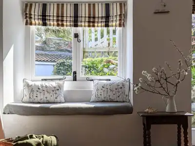 Grade II listed fisherman’s apartment in Lyme Regis Old Town beside the River Lym with private garden. Cosy wood burner living, central location steps to beach, artisan shops, dog friendly riverside walks