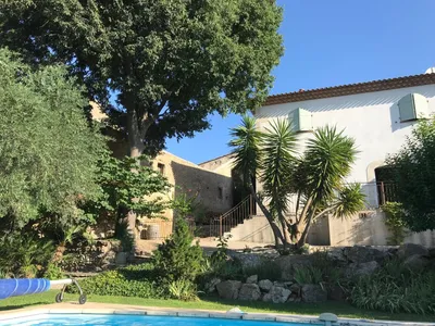 La Bastide is a village house in the heart of Maraussan with stunning views over the historic village centre. It is set in a private walled garden with a swimming pool. The pool is equipped with a top-up heater to keep the water at a comfortable temperature. There is a large patio with views overlooking the garden and the village beyond with an outdoor dining table and chairs for al fresco meals. The house sleeps 6/7 maximum.The property comprises three bedrooms (two doubles and one twin). The main bedroom has an ensuite bathroom and there is an additional family bathroom. There is also a fold-out bed in the twin bedroom and a travel cot. Downstairs there is a well-equipped kitchen with a small adjoining utility room with washing machine and dryer, a dining-room/sitting room with french doors leading out to the patio plus a second study/games room.