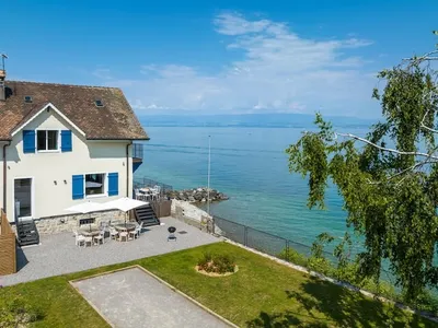 Villa "Galéman" is a charming residence on the front line by Lake Geneva. Completely renovated in 2022.In summer, direct access to the lake from the terrace (on a small public beach). A petanque court in the garden will liven up your long summer evenings.