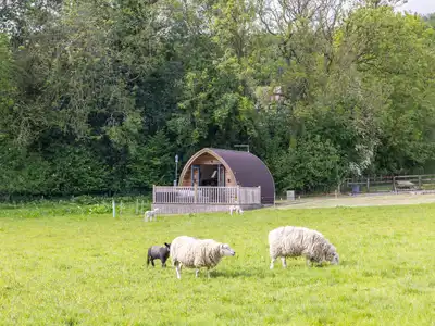 Open living and bedroom space, kitchenette with dining table, kitchen sink, hob, fridge, toaster, kettle and microwave and a comfy sofa with a smart TV. There is also a spacious shower room.The Pod in the perfect position to soak in the spectacular views. Located at the bottom of a farm track on the edge of a grass field over looking the valley and beyond. You can enjoy the outside space complete with comfy seating and low evening lighting, making the most wonderful place to enjoy an evening under the stars - what could be better! The most ideal setting for kicking back with a sundowner or for simply enjoying lazy days with a good book and birdsong.