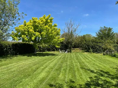 Half an acre double enclosed by stock fencing behind hedging. Huge lawn at the heart. Children and pets love the freedom of running around the garden, often referred to by guests as like a field or paddock!