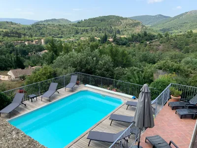 Luxury Air Conditioned Villa, Sleeps 10, Private Pool, Corbieres, Languedoc,South France Villa Corbieres is a charming, cut stone villa located in the beautiful Languedoc region in South West of France. The villa is in a premium position amongst a small group of stone houses built in the traditional style around a lovely courtyard overlooking the pretty village of Durban-Corbières with its medieval castle. Enjoying a peaceful private garden, this lovely house sleeps 10 adults in 5 bedrooms with absolutely stunning views over Durban Castle. Complete with private pool and secluded deck, Villa Les Aiguilles is the perfect location for an idyllic holiday in this still undiscovered yet easily accessible part of Mediterranean France. The property is very well equipped and features a fully integrated kitchen with aged stone worktop and tiling and terracotta tiled floors. The property has also benefitted from an interior refresh in 2022 with new items of furniture and wall coverings in the lounge and bedrooms as well as a brand new set of exterior furniture (loungers and chairs). To the rear there is a tiled patio with plenty of shade, an integrated barbecue - the perfect setting for a warm, relaxing, Mediterranean evening. The secluded gardens will be well stocked with a variety of plants and shrubs. The 9 x 5 metre pool has a stepped end and is surrounded by a hardwood deck area on which to sunbathe or admire the views of the surrounding countryside and the stunning ruin of Durban Castle. The patio and deck are equipped with a sun loungers, table and chairs for outdoor dining.Bedroom Details