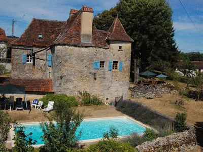 This stunning, carefully restored 17c stone farmhouse is a preserved and textbook example of the local Quercynoix style - typical regional architectural features include a pigeonnier (dovecote), a bolet (covered balcony), a souillarde (stone-vaulted annexe) and two inglenook fireplaces.Location: Superbly situated in a hilltop hamlet, perched above an authentic working village, it's generous accommodation could suit a three-generation family or two big families.