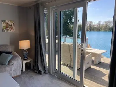 A 2-3 bedroom lodge on a golf course by a lake.There is one large bedroom with a king size bed, a smaller double bedroom and a bunk bed room (available by separate arrangement)
