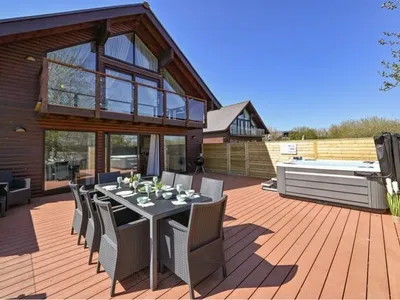 Luxury 4 Bedroom Lodge with private hot tub and Pool table on Retallack Resort. Two ground floor bedrooms and two first floor bedrooms with a living room on each floor and a huge ground floor terrace with hot tub, bbq and egg swing chair. Free access to the resort pool, gym and wellness. We own the two neighbouring properties if you would like to travel with a larger groups.5 Reviews