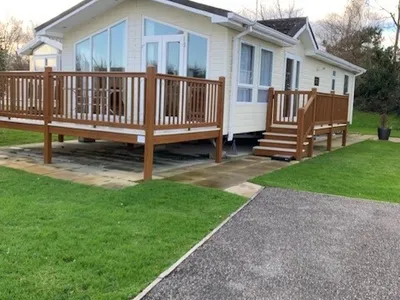 Our spacious and very comfortable double lodge (16’ x 40’) is full of light and conveniently located for all local amenities and is on level ground.
