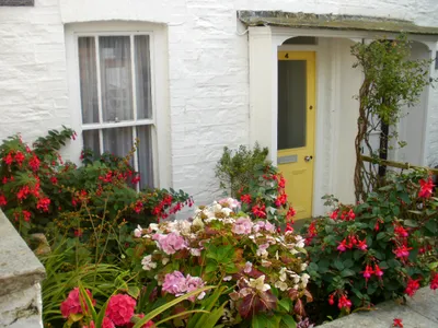 Choughs has a tiny, colourful front garden, plus a back door that leads to our shed and also to an alleyway out to the adjoining street. When arriving and departing, it is possible to park, briefly, within 20 yards of the front door to unload/load your car. At other times, you must park in the main car park at the top of Port Isaac; the walk up the hill will help work off the fresh fish and cream teas you will have enjoyed! We provide full details about where to park and costs.